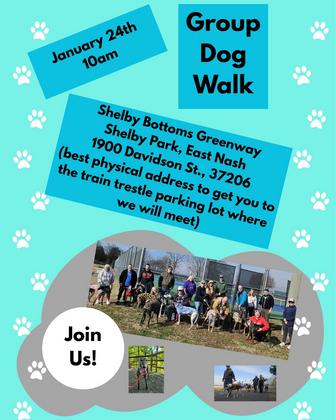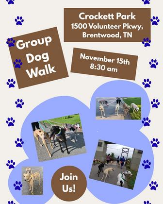 Monthly Group Dog Walks: Join us once a month at a different Middle TN park for a leisurely stroll with the hounds. Time and location TBA. Potential adopters welcome!